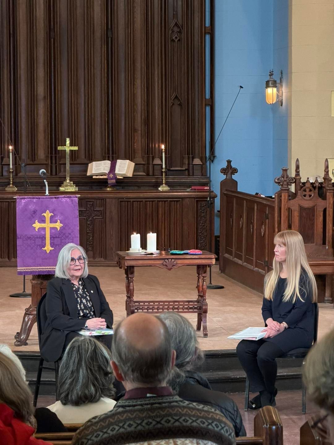 We were blessed to have Marie Wilson, Canadian journalist and one of the three Truth and Reconciliation Commission commissioners, and Stephen Kakfwi, Dene leader and former Northwest Territories Premier, participate in worship with us on February 22nd, on the topic “Ten Years Forward: Reflections on the Truth and Reconciliation Commission Report”.